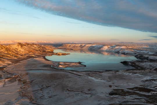 From there, drive to Graenavatn, a small emerald-hued crater lake set among volcanic ridges. Its vivid green waters are rich in sulfur and offer a striking example of Iceland's unique natural chemistry and beauty.