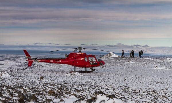 Your departure point is by Reykjavík Domestic Airport; your pilot will be here to give you a briefing of the route you have planned. You will then board your helicopter, buckle up, and take to the skies.