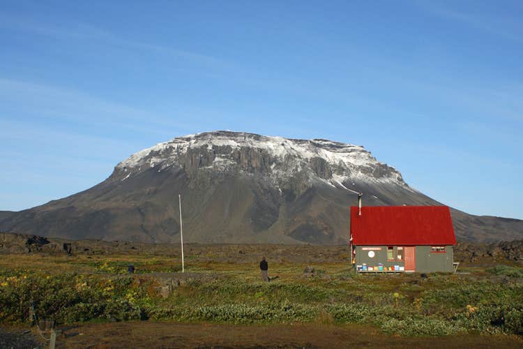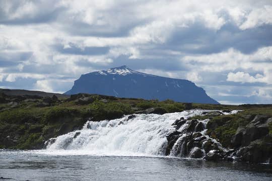 You'll cross rivers and continue along little-traveled gravel trails, an easy feat for your all-terrain vehicle and experienced driver. Next, you'll come to Herdubreidalindir, a green oasis amid a barren volcanic landscape. Here you can marvel at the Herdubreid volcano looming overhead.