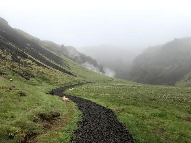 At the end of the path is a geothermal river. It’s a fantastic place for hot spring bathing, and you’ll have plenty of time to relax in the warm waters. There are no changing rooms or facilities at the river, so you might prefer to wear your swimsuit under your clothes or change under a towel.