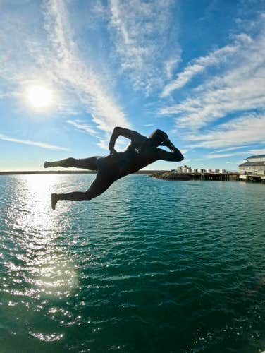 Don't worry if this seems too scary! There are four different ledge heights, so you can progressively increase your height as you feel more confident. Those who want the gentlest option can leap straight from the jetty's edge into the sea.