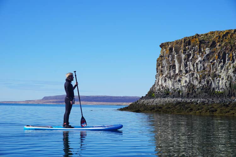 Stand up paddleboarding (SUP) is a sport that originated in Hawaii as a by-product of surfing. It has now made its way from that little volcanic island to this one. By using a paddle, you will propel yourself through the water while maintaining an upright stance. SUP is both a safe and fun activity which will provide you with an opportunity to see the Icelandic nature from a different viewpoint.