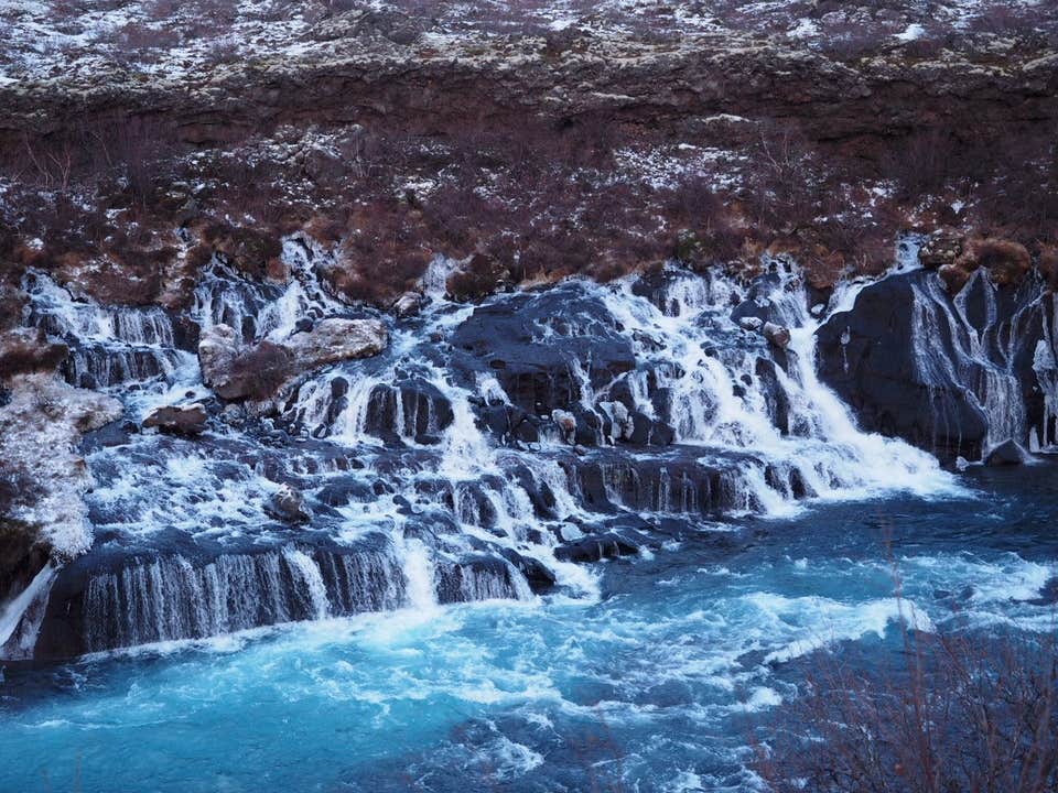 After Krauma, we will head to the historical town of Reykholt and take photographs of nearby waterfalls Hraunfoss and Barnafoss.