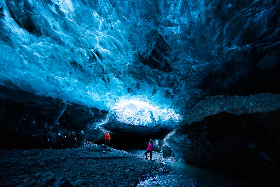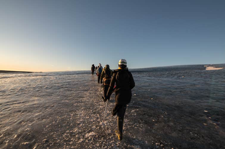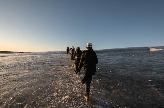 From the lagoon's carpark, you'll board a vehicle and be driven on one of Iceland’s wild back roads to reach the edge of the outlet glacier. Once there, gear and safety instructions will be provided, as well as a short lesson on the area’s history, culture and fascinating geology. Amongst the necessary gear, you will be using is a helmet, head torch and crampons.
