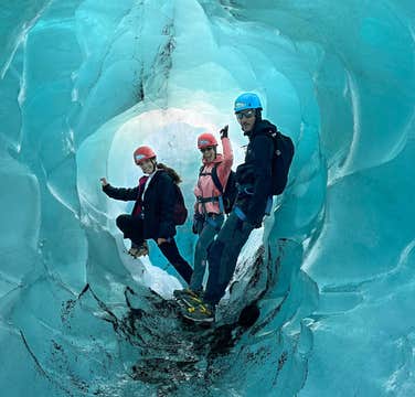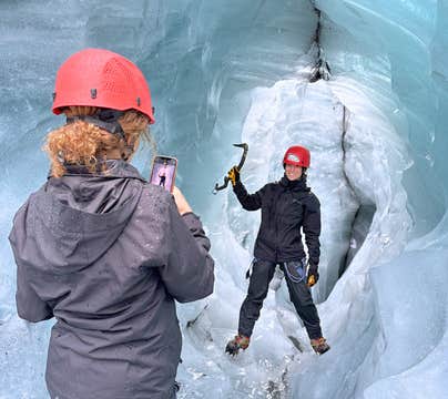 The guide will provide you with all the necessary glacier equipment, briefing, and demonstration to ensure your safety while on the ice. In particular, you’ll gear up with helmets, crampons, harnesses, hiking poles, boots, and ice climbing axes.