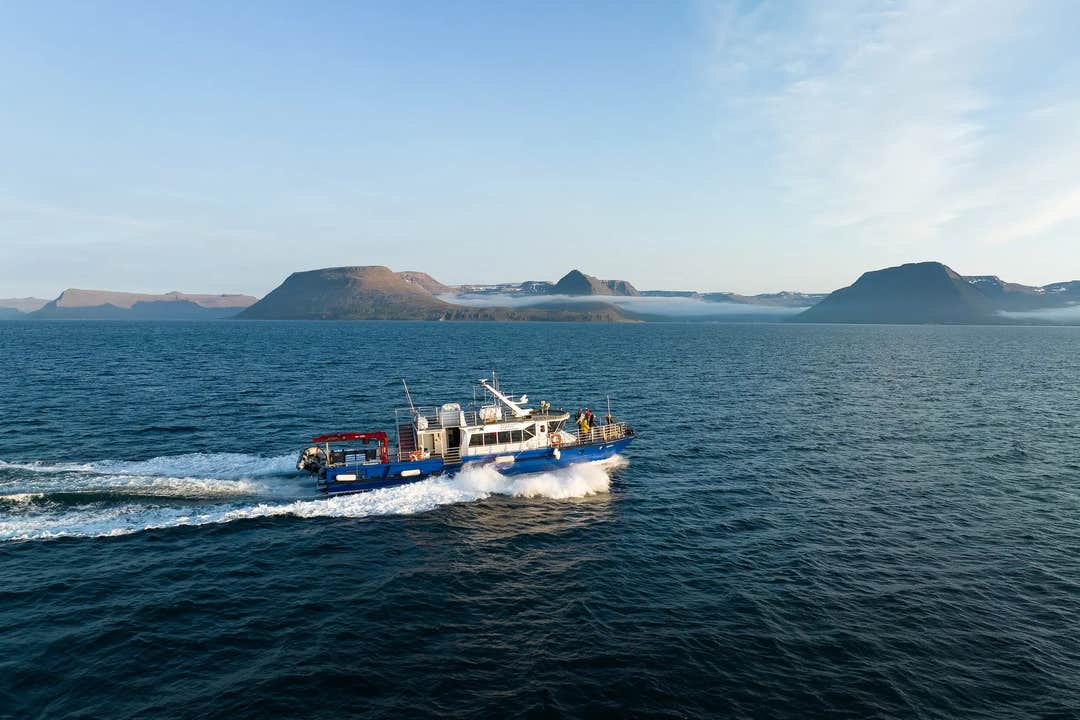 As you leave the Isafjordur harbor, you'll glide into the deep waters of Isafjardardjup fjord, surrounded by dramatic mountains and the endless horizon of the Atlantic. The scenery alone, with steep cliffs, rugged coastlines, and tranquil waters, is enough to make the journey unforgettable.