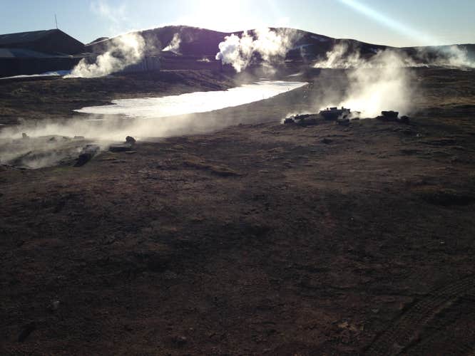Next, your guide will take you to the Namafjall geothermal area to see various boiling mud pots and smoking fumaroles. Also called Hverir, the Namafjall geothermal area is located at the base of Namafjall mountain. As you explore the area, you'll notice its Martian-like landscape, where the earth constantly hisses and bubbles due to the geothermal activity beneath the surface.