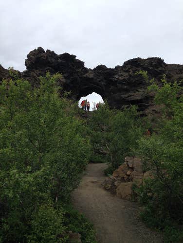 Dimmuborgir was created when lava flowed over a wetland, causing the boiling water to bubble through the molten rock. As the lava cooled, it solidified into dramatic pillars, caves, and arches. In turn, you'll see rock formations that look like ruins of an old castle or fortress.