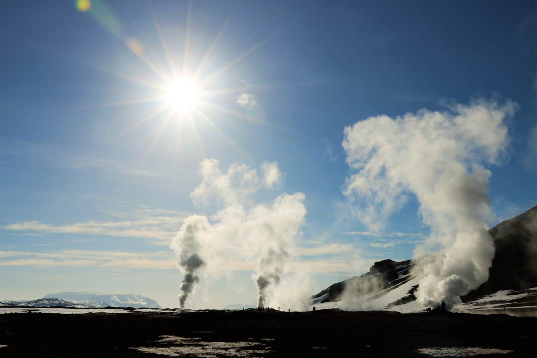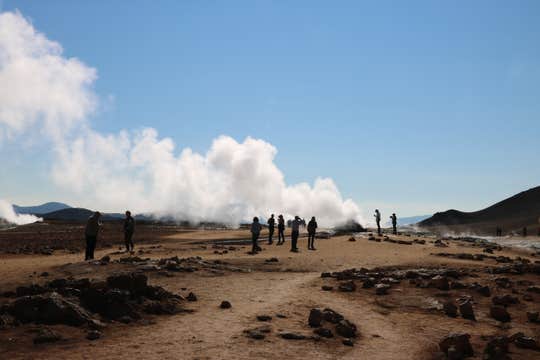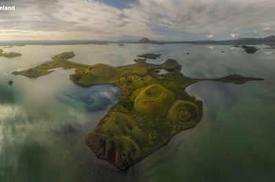 As you travel into the Lake Myvatn area, you'll stop at Grotagja cave, known for its geothermal hot spring inside.
