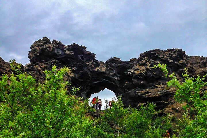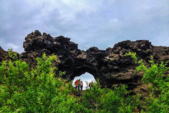 Your journey continues to the otherworldly lava fields of Dimmuborgir, where a past volcanic eruption sculpted towering rock formations and caves. Enjoy exploring the pathways through the lava fields while immersing yourself in the tales and legends associated with this mysterious landscape.