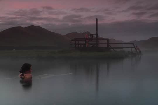 After you have enjoyed the hike, it is time to unwind. There is a natural hot bath nestled at the foot of the desolate Lagahraun lava field which is perfect for easing sore muscles after a decent walk.