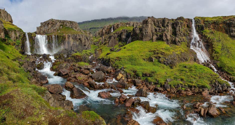 As you traverse the hillsides, bask in your incredible natural surroundings, including vibrant wildflowers, grazing sheep, and pristine waterfalls. Breathe in the fresh air as you appreciate the excellent views in this gorgeous corner of the Eastfjords.