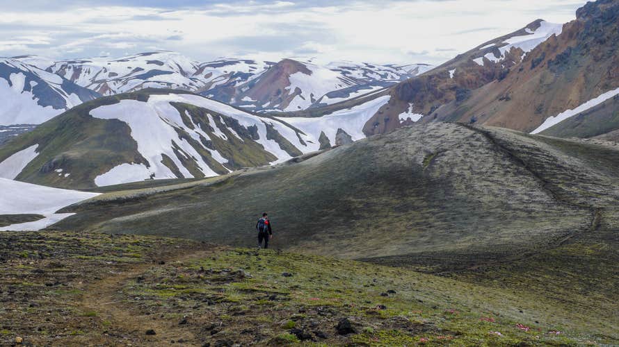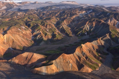 Since the first day involves traveling into the Highlands, the group will only cover about 5 miles (8 kilometers). You'll start at Landmannalaugar and walk through lava fields and canyons, admiring striking rhyolite mountains and panoramic views.