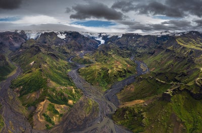 The scenic landscapes around the Thorsmork valley will encapsulate your entire hiking trip. These mountain ridges are the perfect spot to take unforgettable photos of the Highlands.