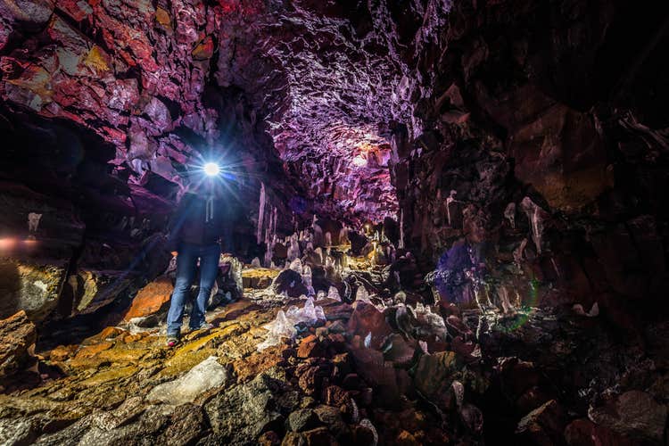 Your guide will lead you about 2,950 feet (900 meters) into the long lava cave. It's one of Iceland's most extensive lava tunnels, formed over 5,000 years ago by a volcanic eruption.