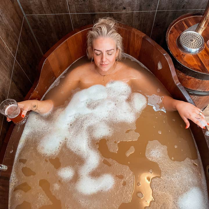 Slip into your handcrafted wooden tub filled with young beer, live yeast, hops, and aromatic oils. As warmth seeps through your skin, it nourishes your skin, strengthens your hair, and melts away tension. Pour yourself a cold draft from your personal tap and let the calm sink in.