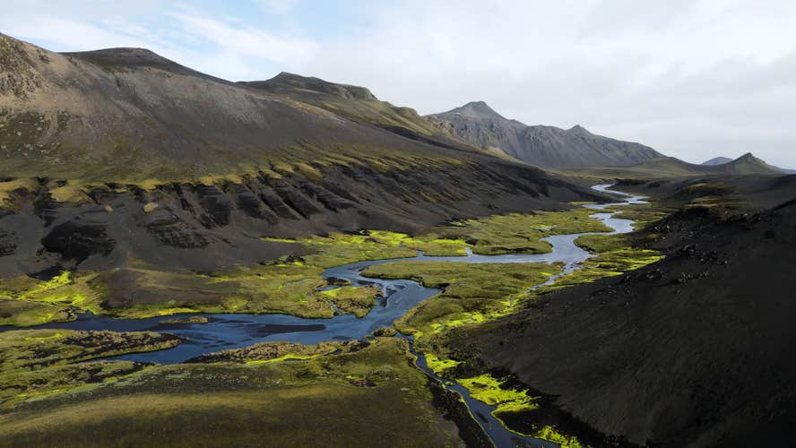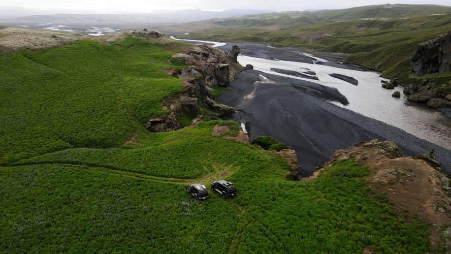 From Vik, you will take the famous Fjallabak Sydra mountain road into the Highlands. The scenery changes quickly, from mossy hills to black desert stretches and glacier-fed rivers.