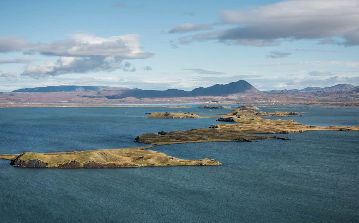 As you fly, you'll see some of the other sights that the area around the lake is known for. Gaze down on the enchanting Skutustadir pseudocraters, formed by volcanic explosions over 2,000 years ago.