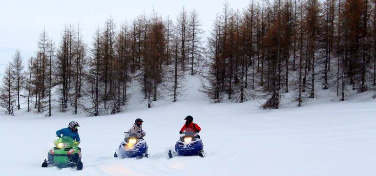 The trip is tailored to your group's skill level and is suitable for beginners, even if you have never been on a snowmobile before.