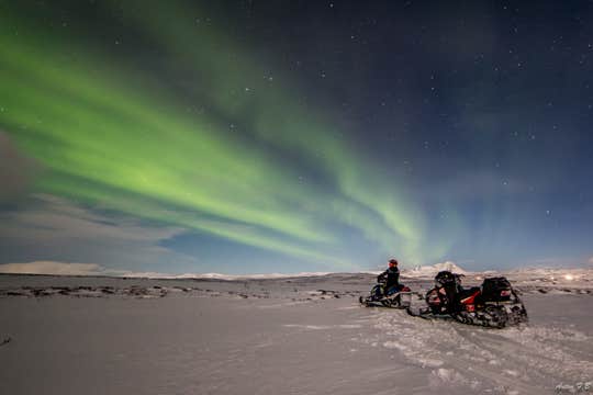 Take advantage of this opportunity to catch the northern lights while enjoying the natural wonders of the Myvatn nature reserve on a snowmobile. Check availability now by choosing a date.