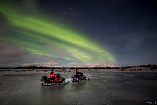 The key to a successful northern lights hunting adventure on a snowmobile is to drive far from the city's light pollution. It is important to note that the appearance of the northern lights is not guaranteed.