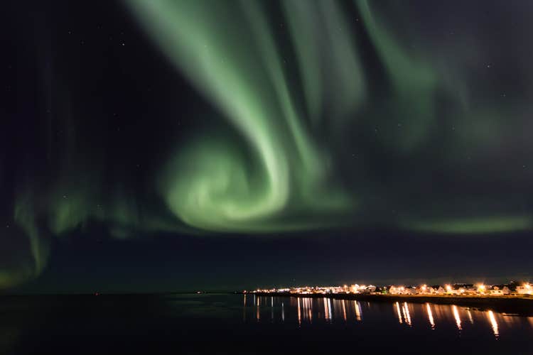 Your journey begins in the Old Harbour near the Harpa Concert Hall. In just 15–20 minutes, you’ll be far enough from the shoreline for prime viewing conditions. From here, you can admire the city fading behind you and the stars glowing overhead. On clear nights, the Imagine Peace Tower shines from nearby Videy Island as you wait for the aurora to appear.