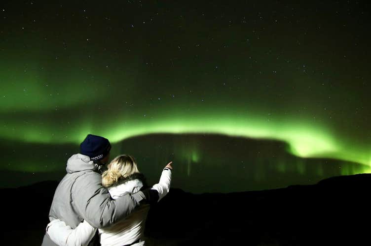 However, if the Auroras decide to show up, you will see the sky lit up by this spectacular sight. You'll keep warm with an authentic Icelandic wool blanket and hot chocolate, and you can enjoy some Icelandic pastries in between taking pictures of the beautiful Aurora Borealis.