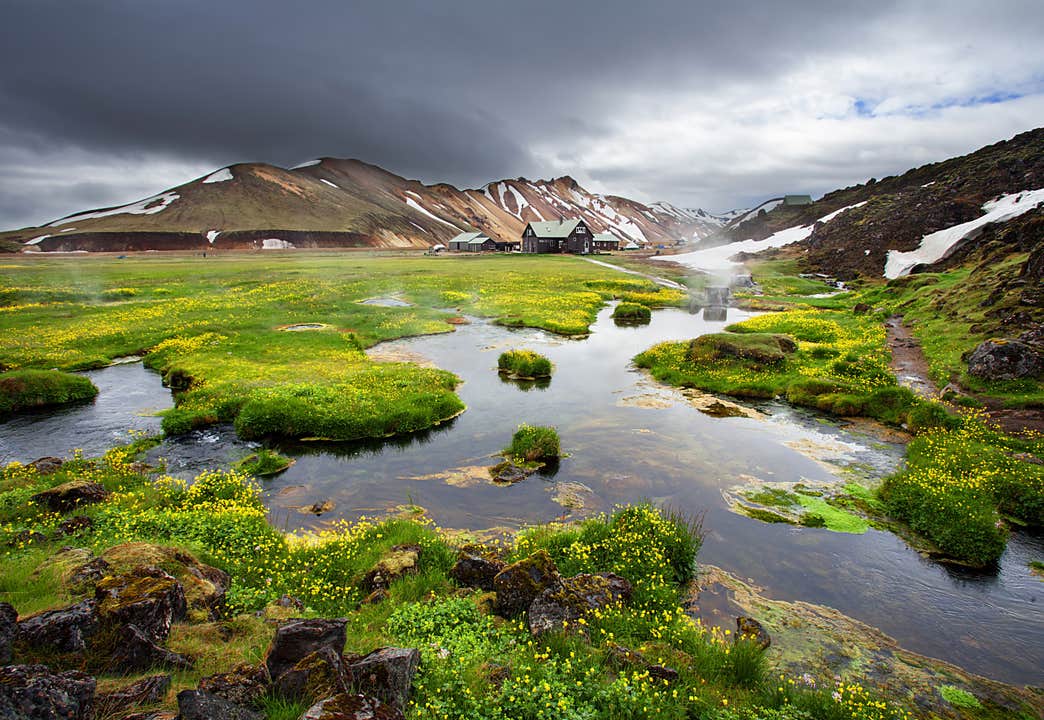 The area offers access to some of Iceland’s best hiking trails, including short loops to Laugahraun Lava Field and Brennisteinsalda Volcano, as well as multi-day treks like the Laugavegur Trail to Thorsmork.