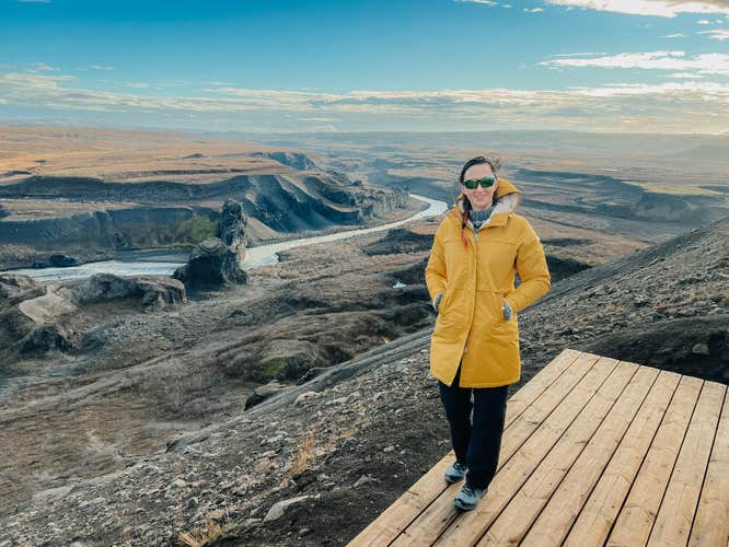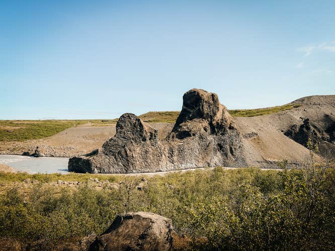 Next, you'll travel alongside the Hljodaklettar cliffs, a series of basalt rock formations that create strange echoes. Their intriguing shapes make them fascinating to see.