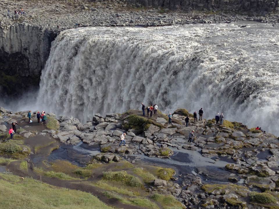 Continuing east on this waterfall tour in Iceland, you travel through landscapes shaped by lava and glacial rivers on the way to Dettifoss Waterfall, the most powerful cascade in Europe. Marked paths and viewing platforms let you safely get close to the falls and watch the water crash into the canyon.