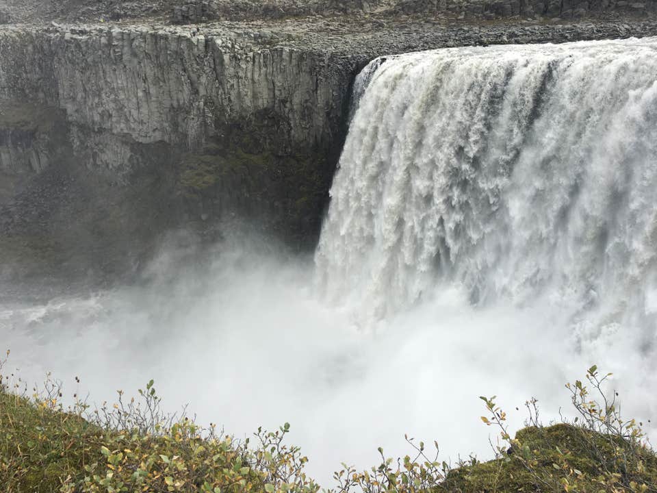 You'll visit two more waterfalls today – Dettifoss and Sellfoss. Dettifoss waterfall, the more famous of the two, is known as the most powerful waterfall in Europe, with water dropping around 144 feet (44 meters) over a 328-foot (100-meter) wide edge.