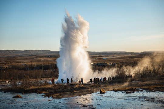 Next, you'll venture onwards to the geothermal area of Geysir. Here, you'll encounter the Strokkur geyser, erupting with steaming water at regular intervals, reaching impressive heights against the backdrop of bubbling mud pools and colorful mineral deposits.