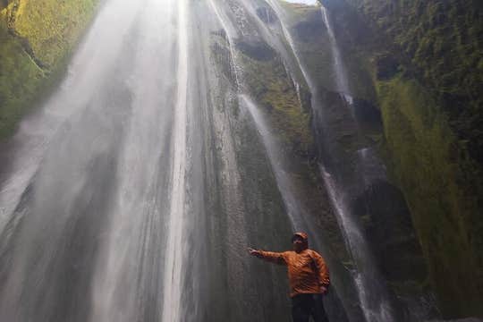 From there, you'll visit Seljalandsfoss, a majestic waterfall that allows you a rare opportunity to walk behind its cascading waters. The experience is magical as you feel the mist on your face, surrounded by the thunderous roar of nature's power.