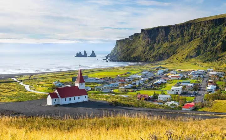 The village is also home to the iconic Vík church, which sits on a hill and offers views of the surrounding area. The village has restaurants, shops, and accommodations despite its small size.