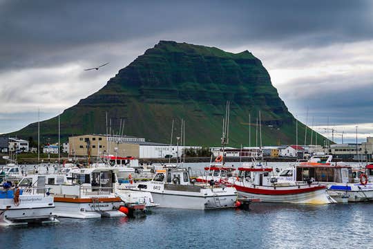 In Olafsvik town, experience the blend of historical charm and modern life, and enjoy the town's rich birdlife and picturesque setting. The journey continues to the iconic Kirkjufell mountain, a photographer's paradise, especially when paired with Kirkjufellsfoss, its gorgeous foreground waterfall.