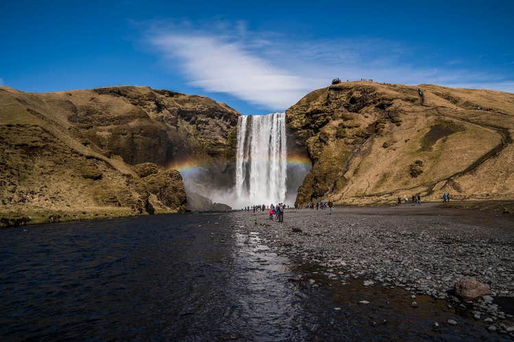 Your first stop is the beautiful Seljalandsfoss waterfall, one of the only waterfalls in Iceland where you can walk behind the cascading water. Next, visit the stunning Skogafoss waterfall, renowned as one of the most powerful falls in southern Iceland, with a staircase to walk up and see the view from the top of the falls.