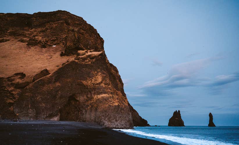 The Reynisdrangar sea stacks, reported to be trolls turned to stone at daylight according to folklore, stand proudly in the ocean. Basalt columns line the shore, while towering cliffs and powerful waves add to the beach’s allure.