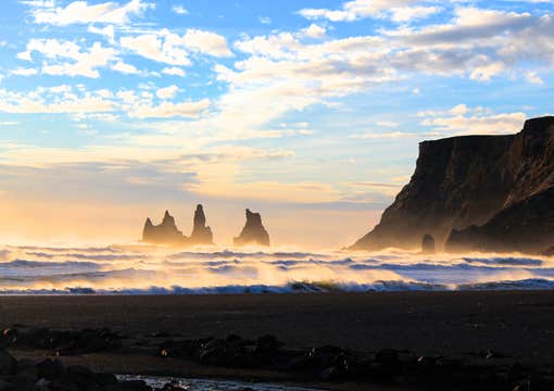 The guide will also share stories about the Solheimajokull glacier's history. They will also share insights about the glacier's relevance and impact on Iceland. After enjoying the beauty of Solheimajokull glacier, you'll head to the world-famous Reynisfjara black sand beach.