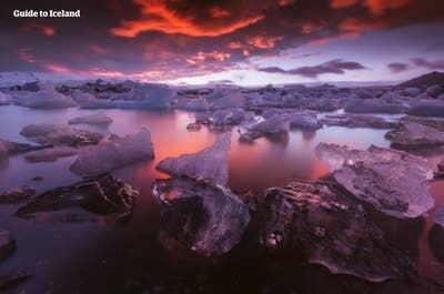 Nearby at Diamond beach, giant ice chunks wash ashore and glitter like diamonds against the jet-black sand. The contrast is unbeatable, so ensure your camera is ready to capture this mesmerizing scene.