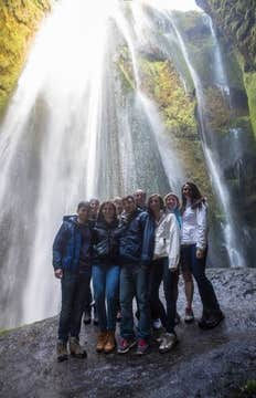 Skogafoss and Seljalandsfoss are two of the region's most visited waterfalls you may wish to include in your itinerary. Skogafoss tumbles almost 200 feet (60 meters) over a sheer cliff, and a rainbow in front of the falls adds to its beauty on sunny days. Seljalandsfoss is famous for being the waterfall you can walk behind, so make sure you’ve got your waterproof gear on to enjoy it fully.