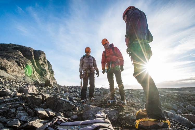 After the drive, your guide will distribute all the necessary gear. The equipment includes a harness with a headlamp, crampons, and an ice axe, all essential for traversing icy terrain.