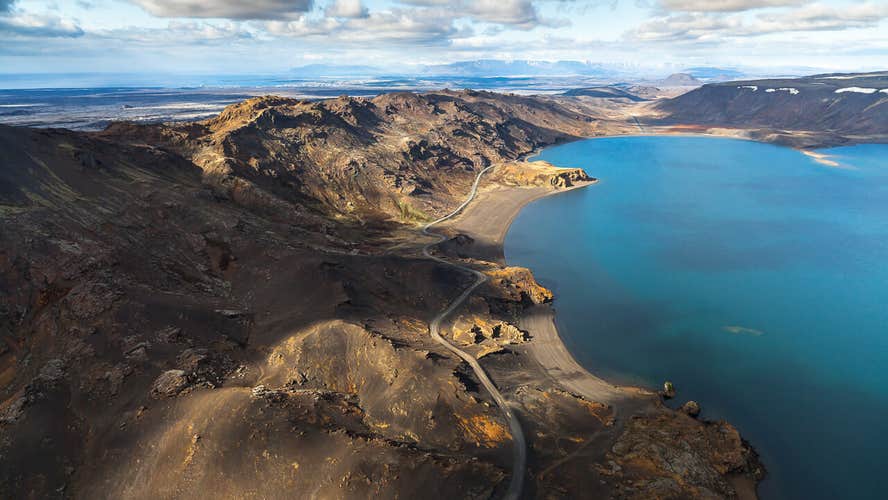 Your first stop is Kleifarvatn, a deep blue lake along the Mid-Atlantic Rift. Surrounded by jet-black lava fields, the lake's stillness has a mysterious beauty. According to legend, a whale-like creature lurks in its depths, just one of the local tales that bring this landscape to life.