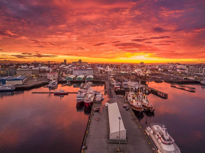 Finally, you'll walk along the picturesque Old Harbor, lined with fishing boats and vibrant buildings, which includes the Harpa Concert Hall and Conference Center. With its impressive glass facade, this stunning building symbolizes modern Reykjavik and is a hub for cultural events.