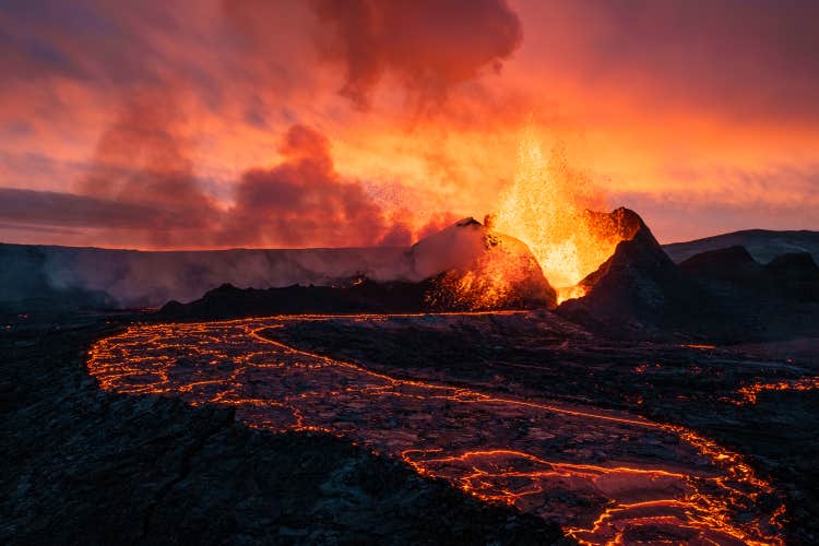 You’ll then see the raw power of the Reykjanes eruption zone, a landscape shaped by fire and ash. Watch the fiery Fagradalsfjall Volcano and the Geldingadalir Valley come into view beneath you.