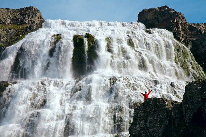 Your exciting day begins in Isafjordur, the heart of the Westfjords. You'll meet your expert guide here, driving you to the day's first stop, the beautiful Dynjandi waterfall.