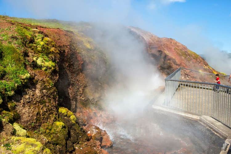 Wooden walkways guide you safely through the steam, and if you look closely, you might spot deer fern, a rare plant that grows only in this area.