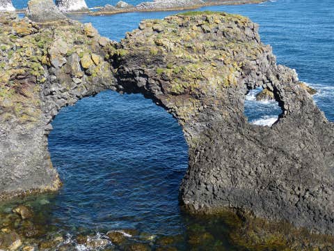 Your next destination is Londrangar, two rock pillars that stand 61 and 75 meters out of the ocean. The birdlife in the cliffs is vivid, and puffins can be seen nesting in the cliffs.