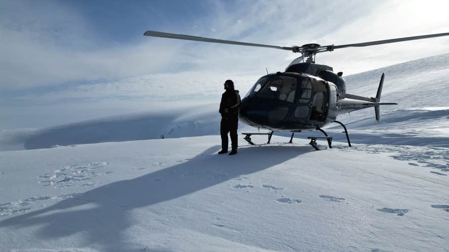 The helicopter lands directly on the glacier, giving you the rare chance to step onto a wide world of snow and ice. From the glacier, the views are endless. Snow-covered peaks surround you, and the horizon seems to go on forever, creating the perfect setting for adventure.