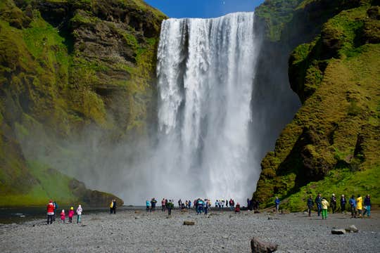 On your way back to Reykjavik, you will visit the majestic waterfall Skogafoss, with a 60-meter high drop and width of 15 meters it truly is breathtaking. Climb the staircase next to it to enjoy an incredible view from above, or cast your eyes upwards from the ground to take in this waterfall's astonishing power.