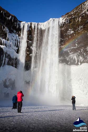 Next, you’ll visit another of Iceland’s famous waterfalls, Skogafoss. Marvel at the waterfall from ground level and then climb around 500 steps to view the falls from above.